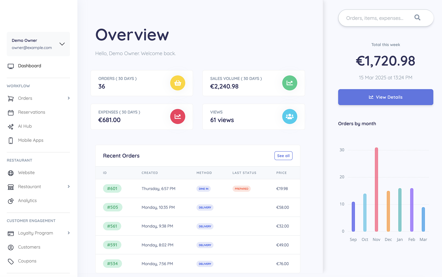 Transform your restaurant with our complete platform - POS, online ordering, reservations, mobile app, kitchen display system and more. Everything you need to streamline operations.
